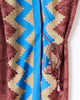 The kimono-dress can be worn as an open version or as a full length dress knees, crossed in a wrap-around thanks to a system of links. The Finishing touches are made by hand with a vegetable silk thread, on the shoulders with a ladder stitch and on the edge of the kimono with a croquet stitch traditional Moroccan called "DERS".