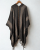 This poncho/ ruana measures 85 cm high and 62 cm wide from collar to wrist.