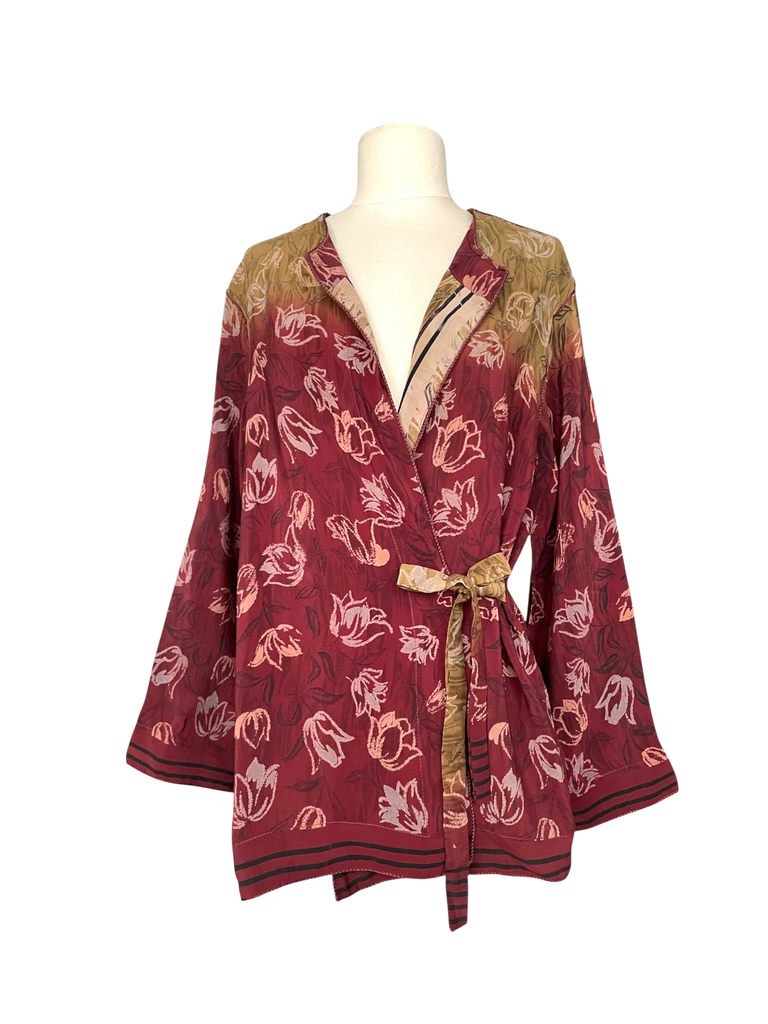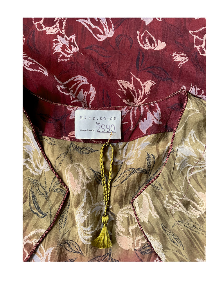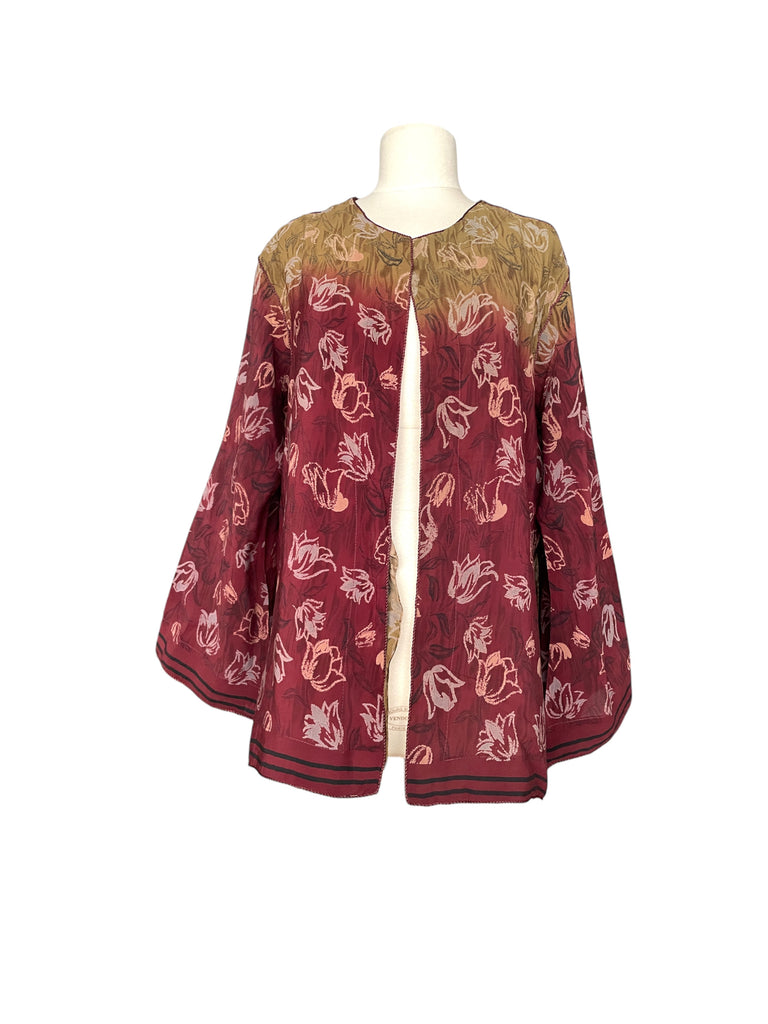 Shirt jacket handmade from a vintage embroidered silk crepe sari.