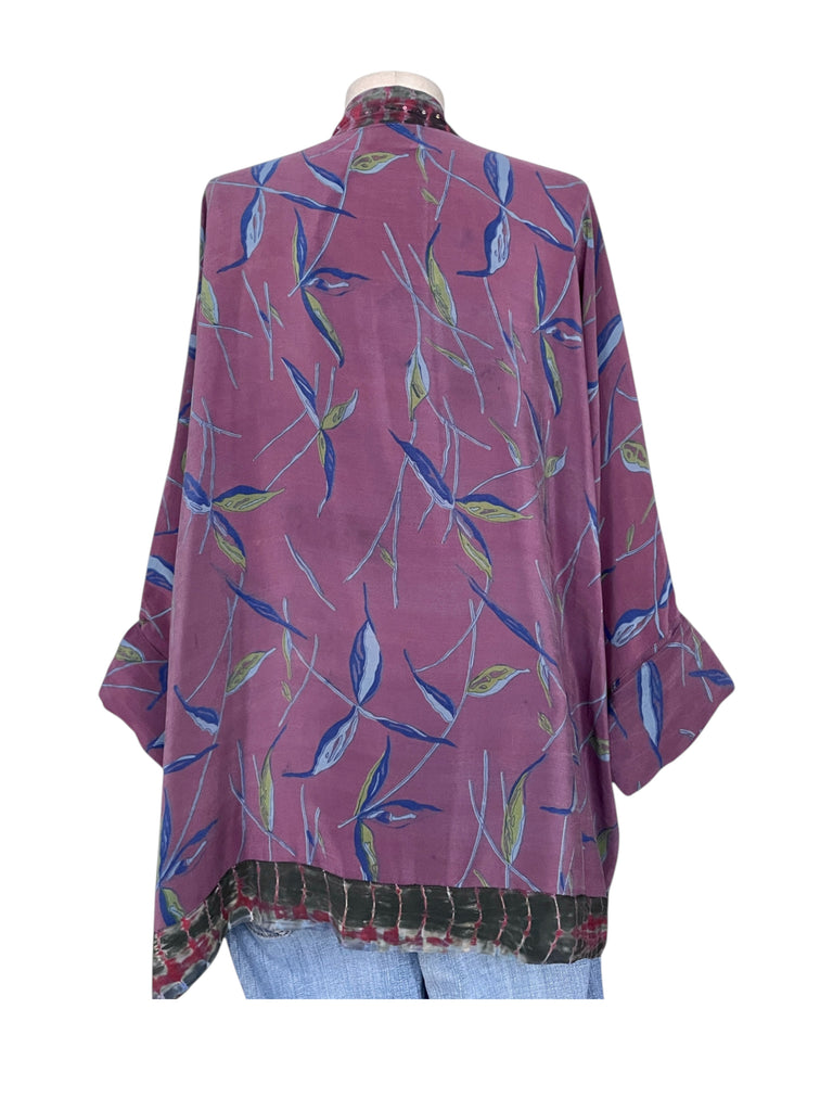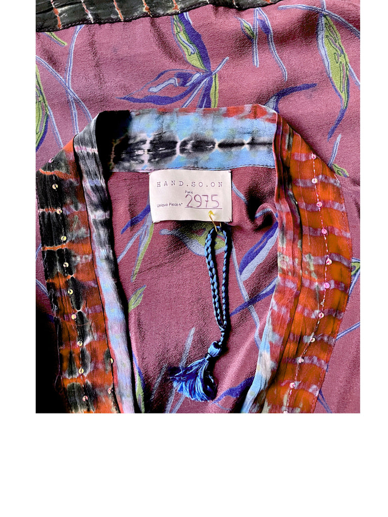 It is handmade from an embroidered vintage silk crepe sari.