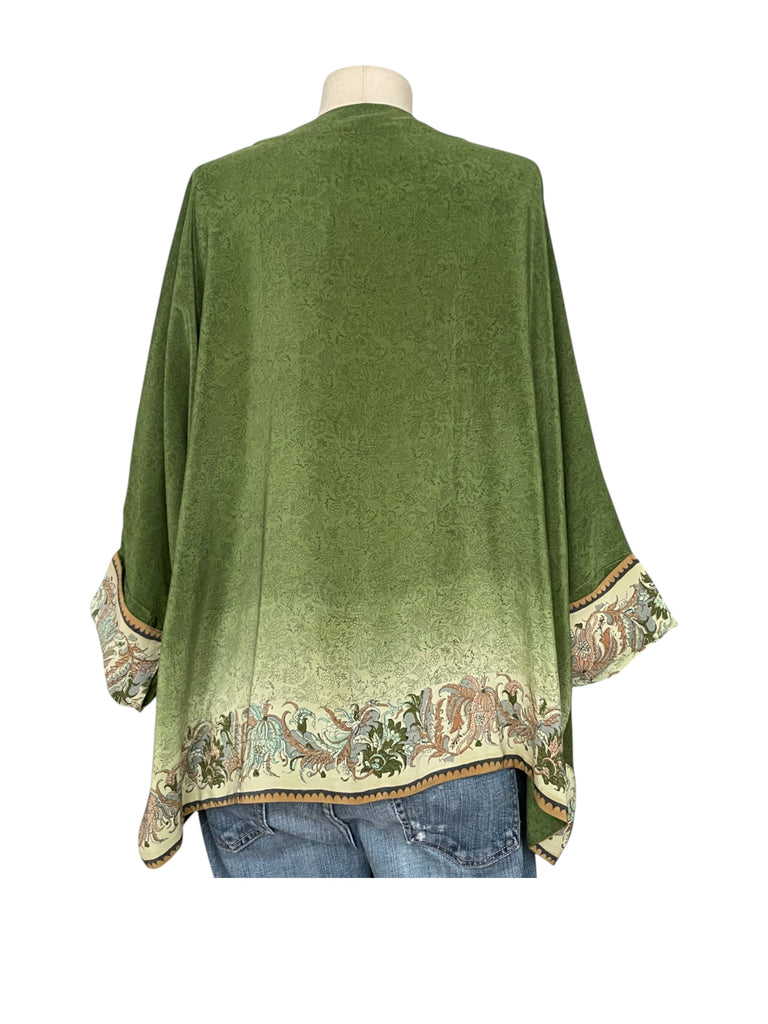 It is handmade from an embroidered vintage silk crepe sari.