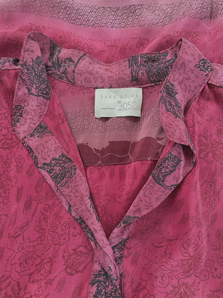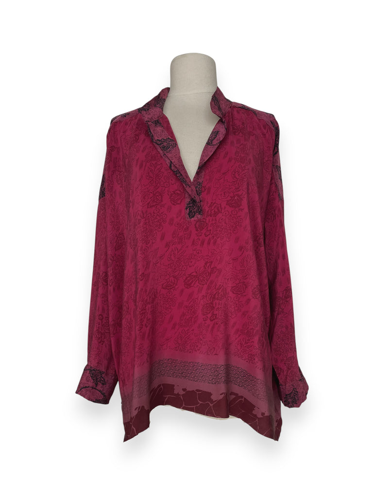 Shirt handmade from a vintage silk crepe sari.
