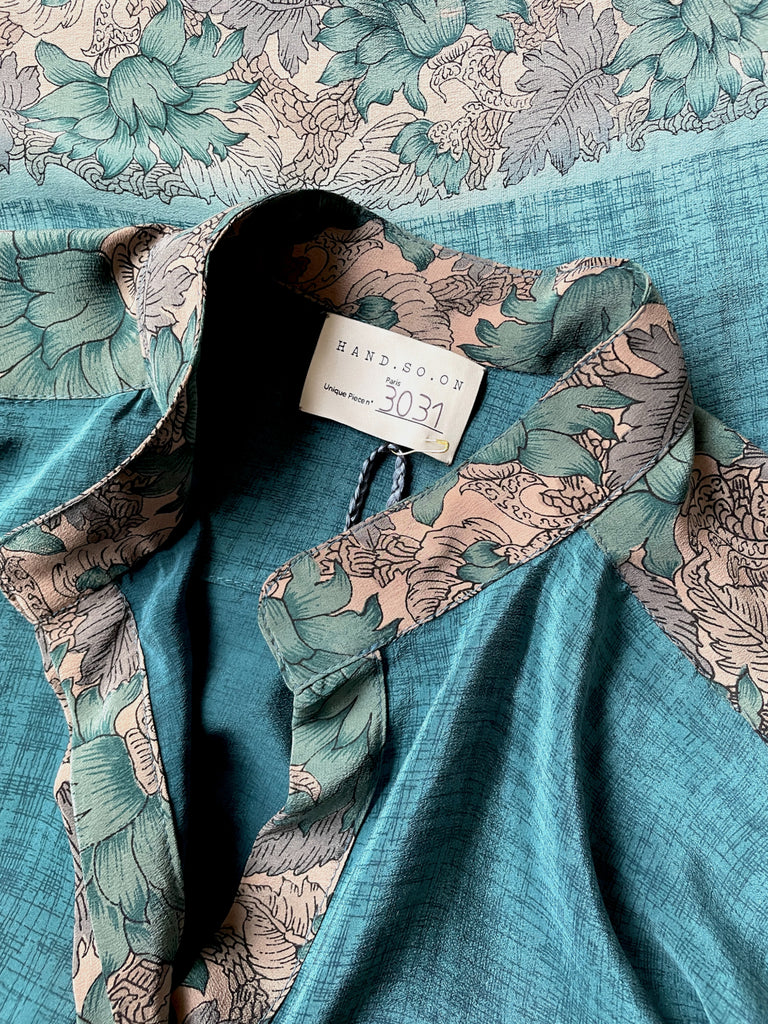 Shirt handmade from a vintage silk crepe sari.