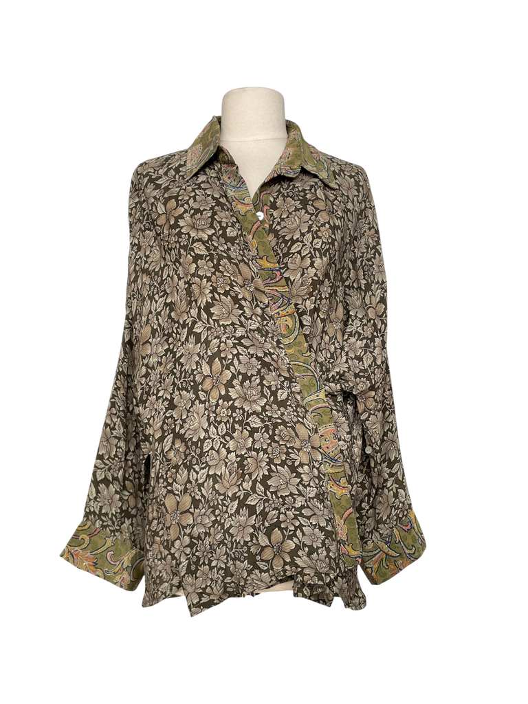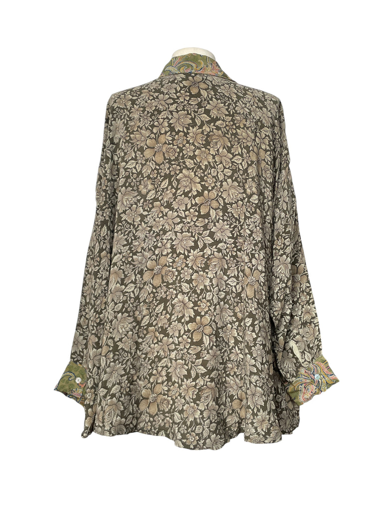 Shirt handmade from a vintage silk crepe sari.