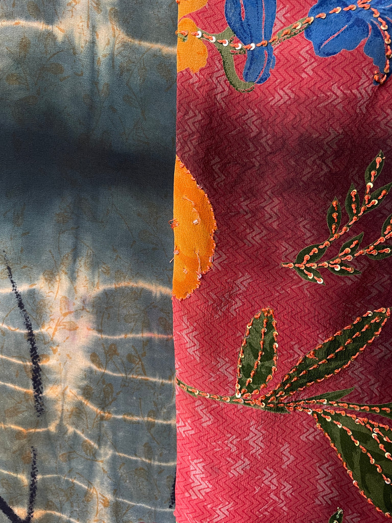 Janine is made from an antique sari in embroidered silk crepe.