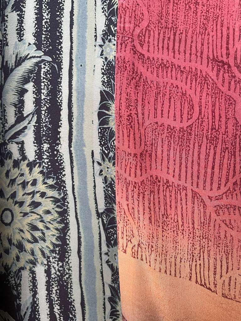 These models may have irregularities, but these are due to the original qualities of the recycled antique silk.