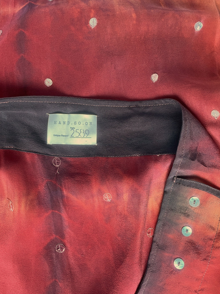 Unique numbered model (only one Janine in this pattern), created by hand and the eye of the designer who positioned the pattern by optimizing the design of the traditional sari.