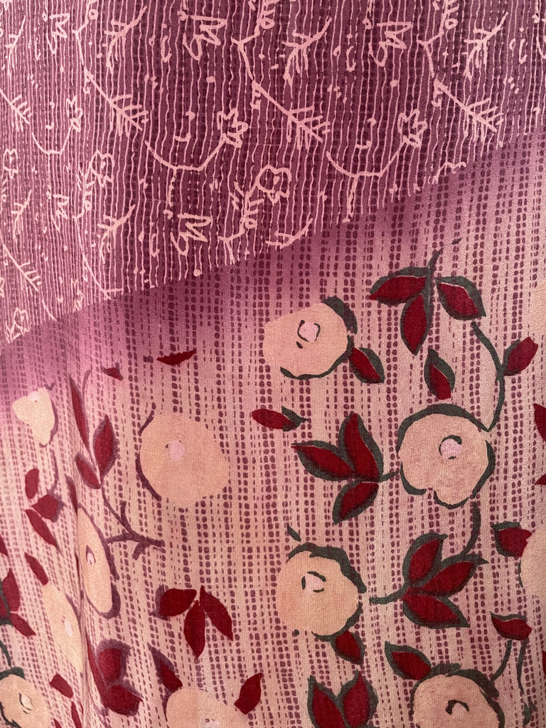 Unique numbered model (only one Janine in this pattern), created by hand and the eye of the designer who positioned the pattern by optimizing the design of the traditional sari.