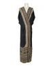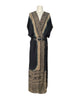 The long kimono can be worn open as a long vest or as a long wrap-around dress thanks to a system of ties. The kimono is hand-finished with vegetable silk thread, a ladder stitch on the shoulders and a traditional Moroccan croquet stitch called DERS on the edges.