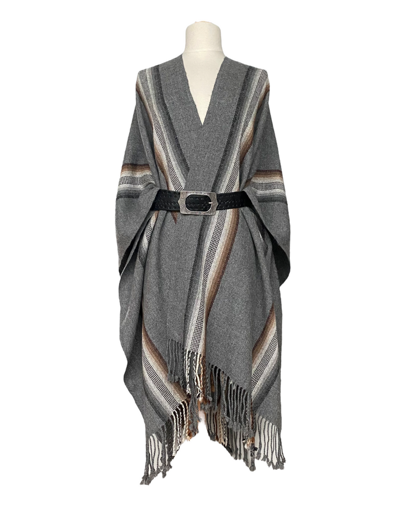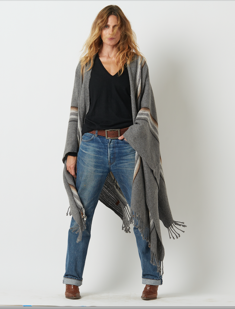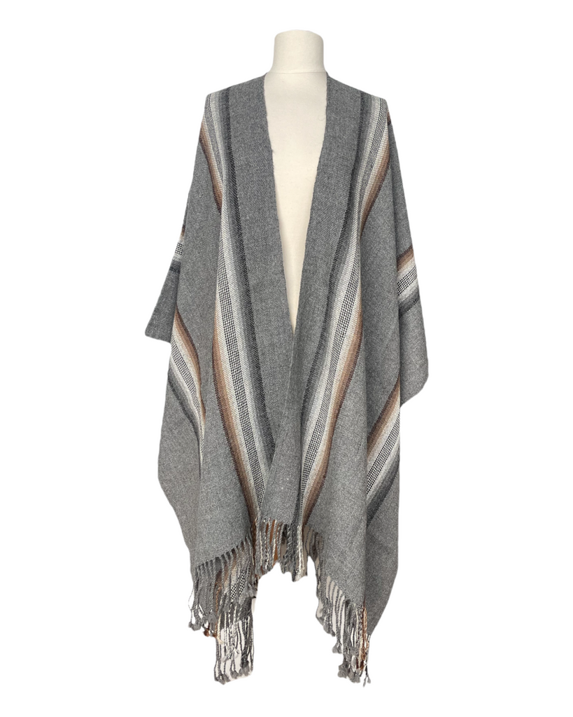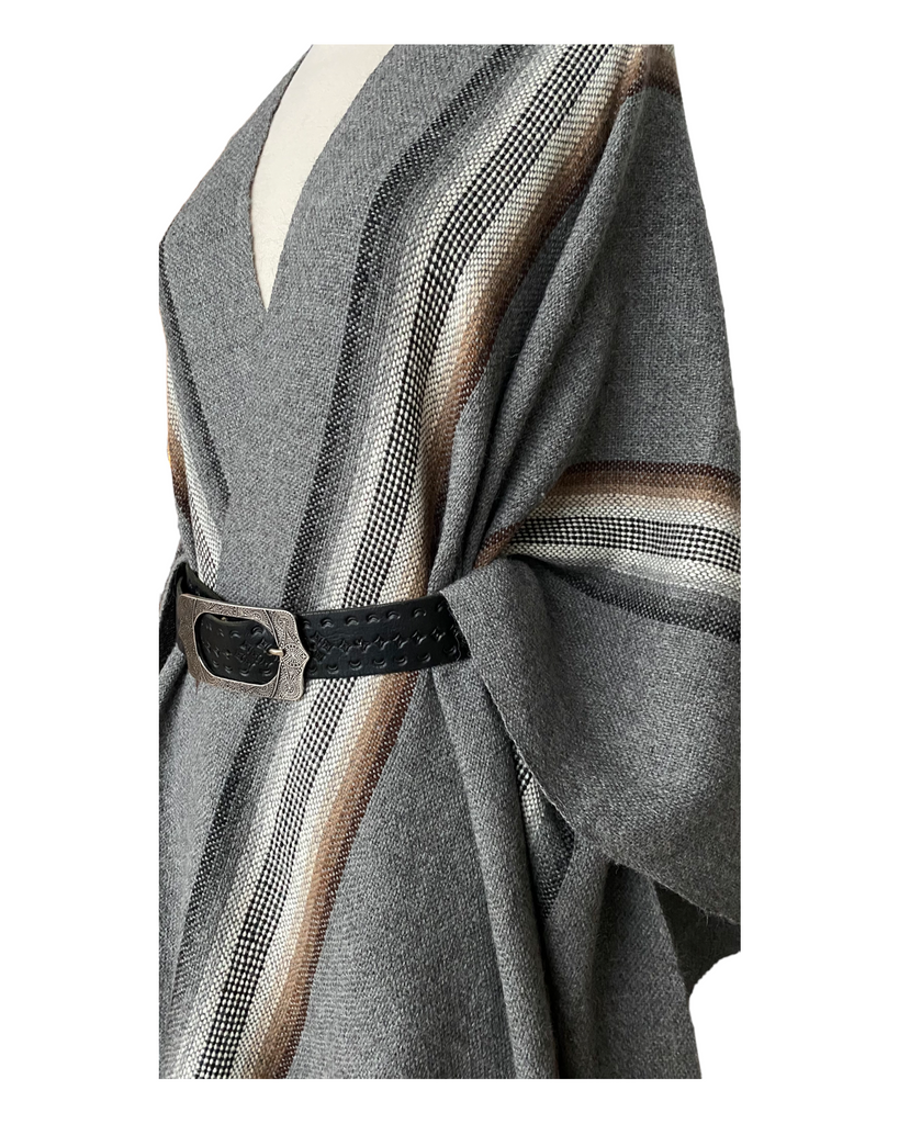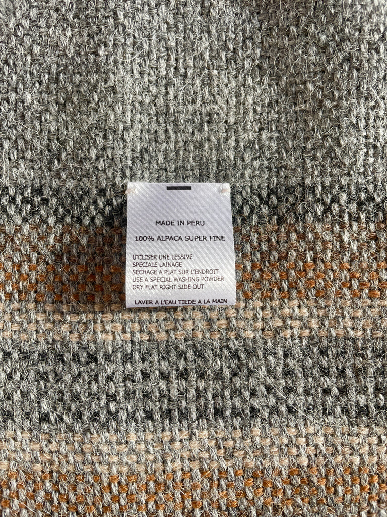The wool is then hand-spun before being woven on ancient wooden treadle looms in the purest ancestral tradition of poncho weaving. The color of the ponchos is pure; there are 22 shades of alpaca fleece.