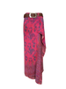 C'est une jupe longue, enroulée autour des hanches et repliée devant en drapé avec un pan ondulant positionné sur la hanche dans un tissu contrasté et est réglable à la taille grâce à un serrage invisible. Elle possède des passants pour accueillir une ceinture de 4 cm de large qui affirme son allure mode.