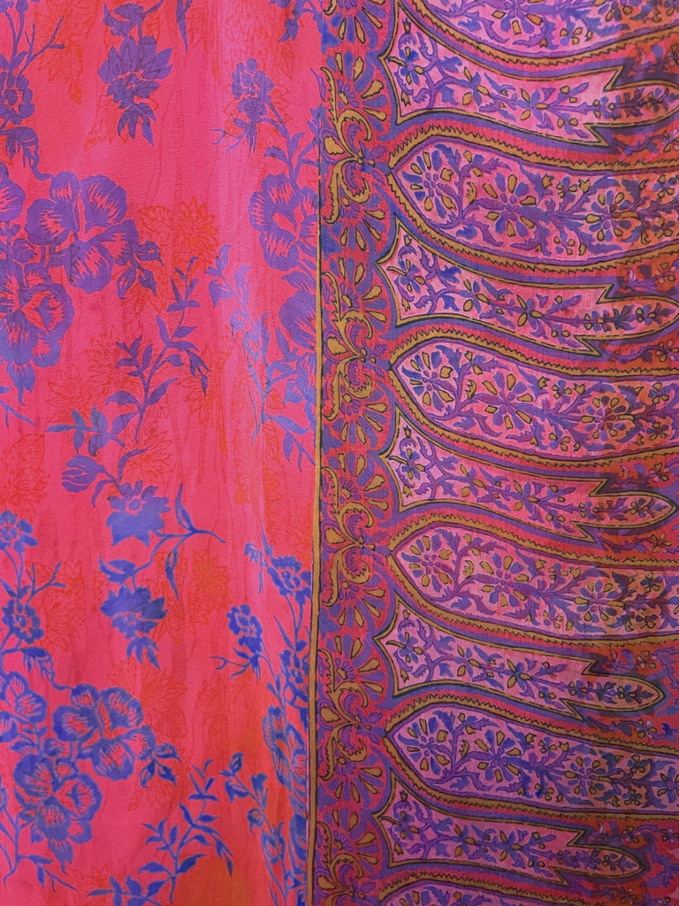 Janine est réalisée à partir d'un sari ancien en crêpe de soie brodée.