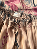 La taille est coulissée par un lien à nouer devant et élastiquée dans le dos. Des passants pouvant accueillir une ceinture de 4 cm de large ont été apportés, elle possède des poches sur les côtés.