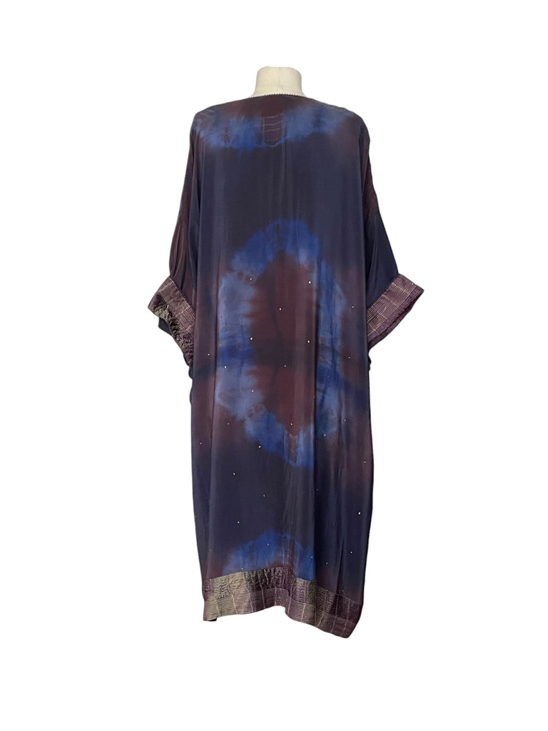 Robe réalisée à la main conçue à partir d’un sari en crêpe de soie vintage.