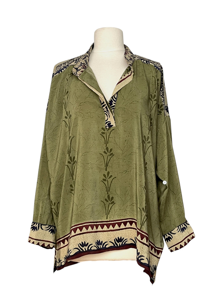 Chemise réalisée à la main à partir d'un sari en crêpe de soie vintage.