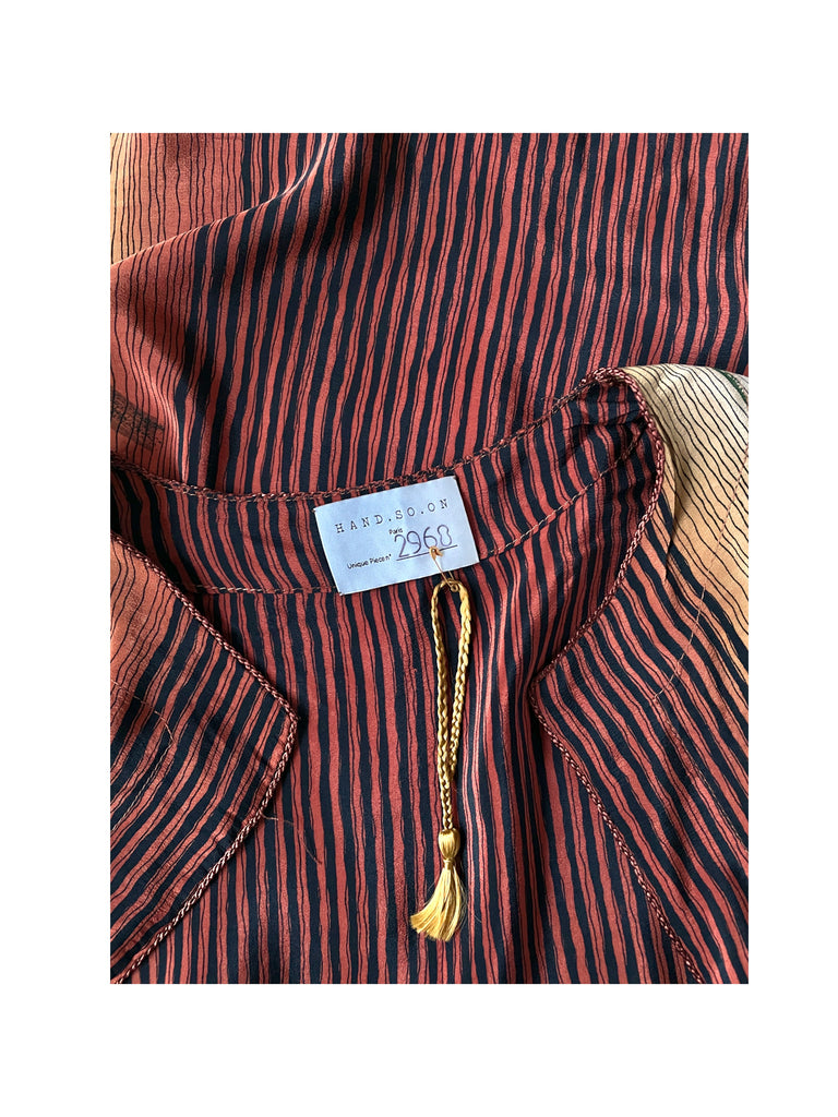 Veste chemise réalisée à la main à partir d’un sari en crêpe de soie brodé vintage.