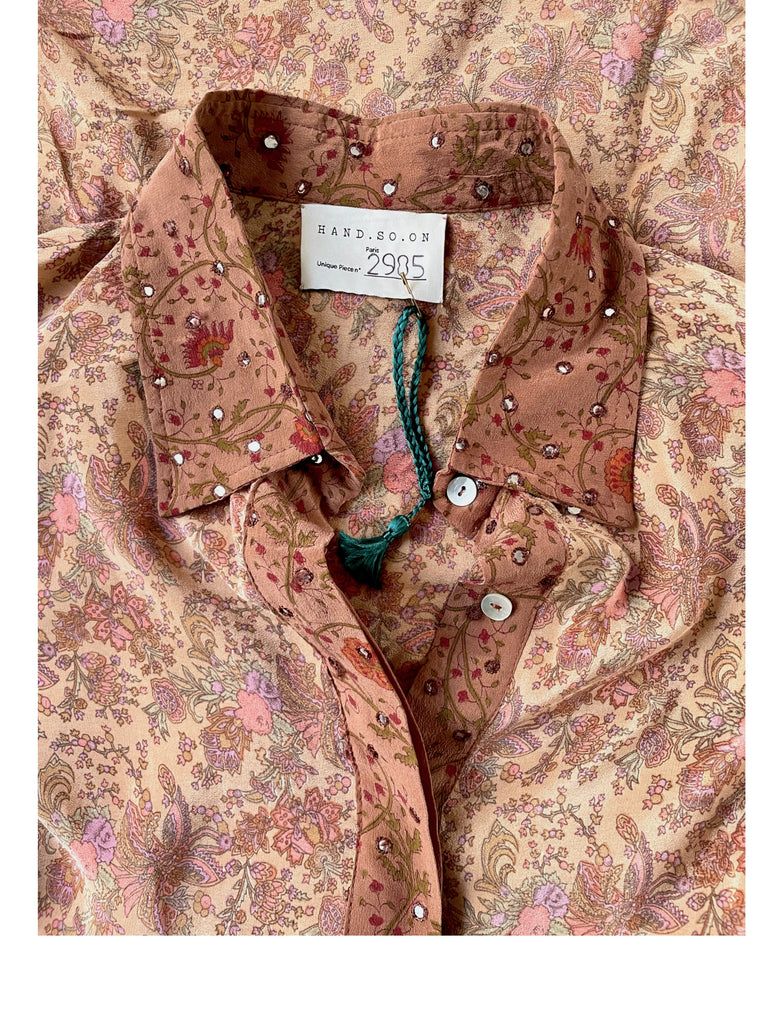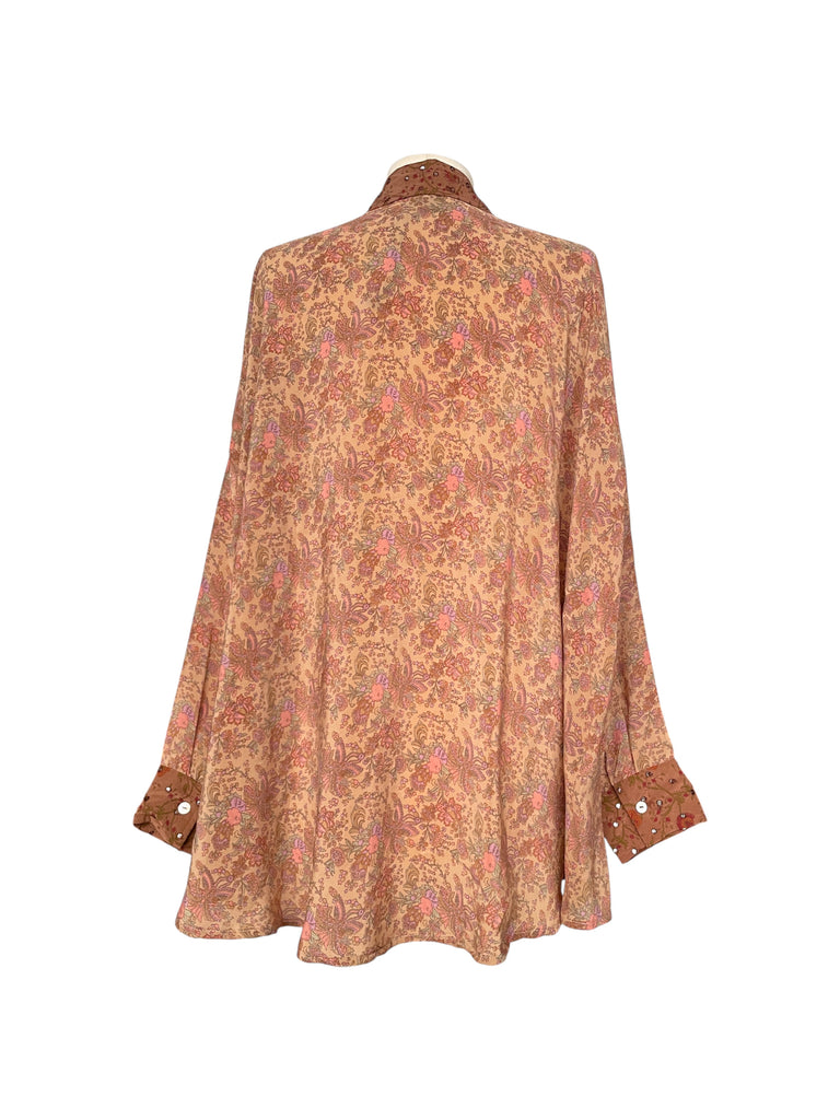 Chemise réalisée à la main à partir d'un sari en crêpe de soie vintage.