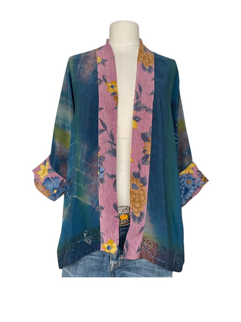 Elle est réalisée à la main à partir d’un sari en crêpe de soie vintage brodée.