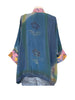 Elle est généreuse avec des manches chauve-souris 3/4 ourlées d’un revers. Elle est sans col et son décolleté est retenu par un seul bouton afin de pouvoir croiser les deux pans pour