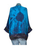 Elle est généreuse avec des manches chauve-souris 3/4 ourlées d’un revers. Elle est sans col et son décolleté est retenu par un seul bouton afin de pouvoir croiser les deux pans pour