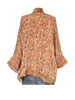 Elle est généreuse avec des manches chauve-souris 3/4 ourlées d’un revers. Elle est sans col et son décolleté est retenu par un seul bouton afin de pouvoir croiser les deux pans pour
