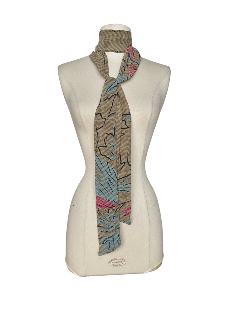 Cette écharpe, cravate, tour de cou, bandeau est réalisée à partir d’un sari ancien en crêpe de soie vintage. Chaque modèle est unique.