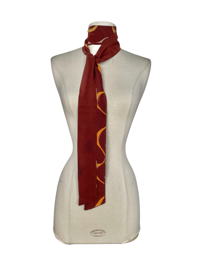 Cette écharpe, cravate, tour de cou, bandeau est réalisée à partir d’un sari ancien en crêpe de soie vintage. Chaque modèle est unique.