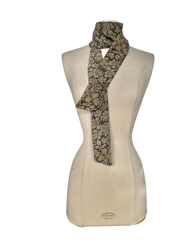 Cette écharpe, cravate, tour de cou, bandeau est réalisée à partir d’un sari ancien en crêpe de soie vintage. Chaque modèle est unique.