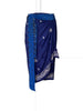 C’est une jupe longueur genoux forme portefeuille, drapée autour des hanches avec un effet "sirène", dû au galbe de sa coupe et réglable à la taille grâce à un jeu de boutons. Elle est vendue avec une ceinture écharpe aux motifs contrastés qui valorisent la préciosité des dessins originaux. Nous vous conseillons de porter ce ruban en le positionnant de manière asymétrique pour le laisser flotter autour des jambes.