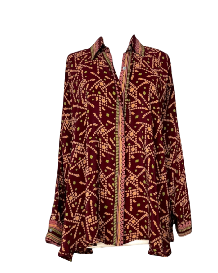 Chemise réalisée à la main à partir d'un sari en crêpe de soie vintage.