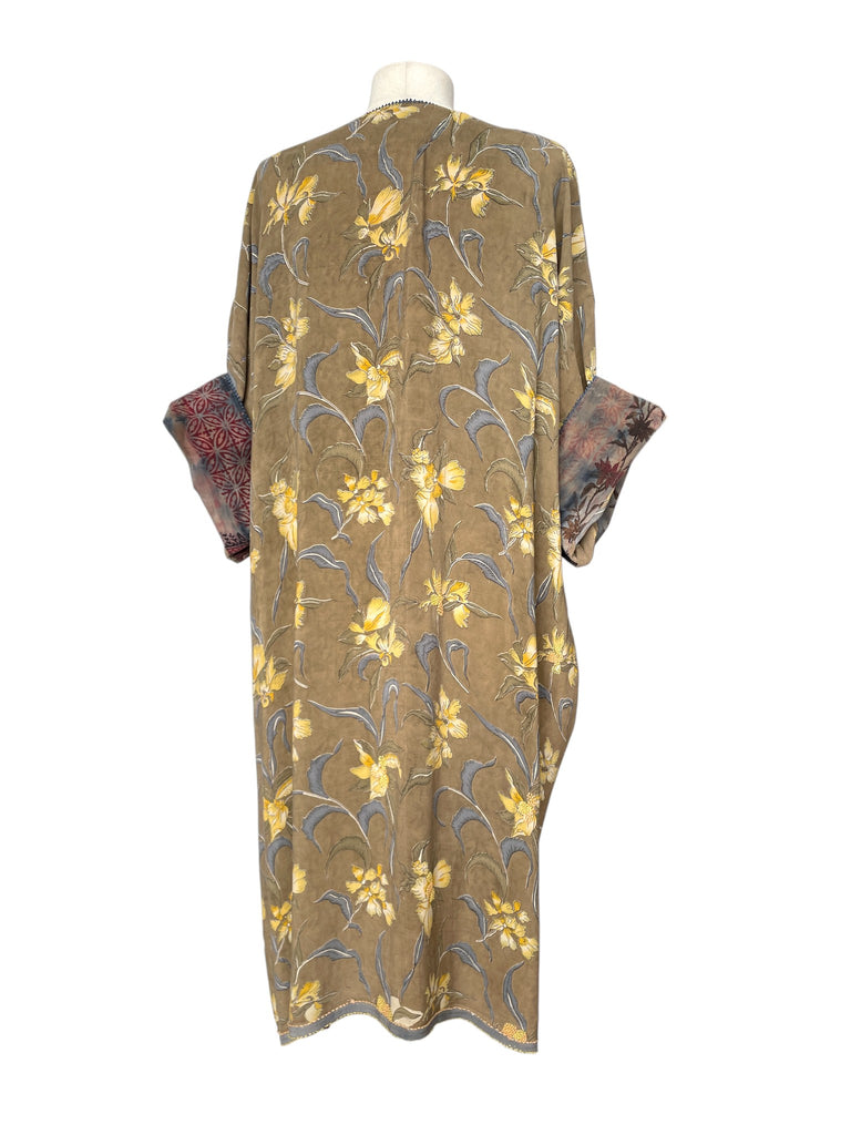 Robe réalisée à la main conçue à partir d’un sari en crêpe de soie vintage.